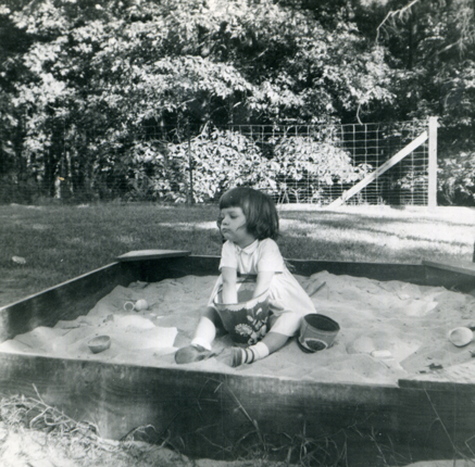 Daddy added a sandbox to the back yard, providing hours of entertainment making mud pies and hoppy-toad houses. As we kids got older, he cleaned out the scrubby undergrowth in the woods between the backyard and the creek. The wild violets, however, were still there and flourished. I would pick violets until my tiny hands couldn’t hold any more and take them home to put in a little tea-set pitcher. My brother liked looking for crawfish in the creek and took one to school in a large tin tub. It stayed there until the end of the year.