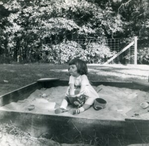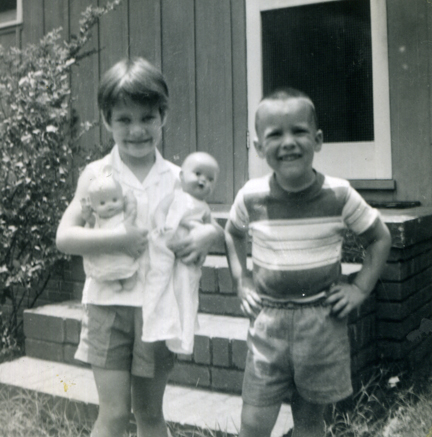 The house is small. The wood siding was painted gray, and a brick wall extended from the front door beyond the side of the house, making a small private area next to the driveway. The door to the crawl space was next to the side steps toward the back of the house. Daddy dug out enough dirt so he could stand, and set up a workshop under the house. It was too deep for us to get in and out by ourselves, but with Daddy in there, he’d help us down and we’d watch him fix things.