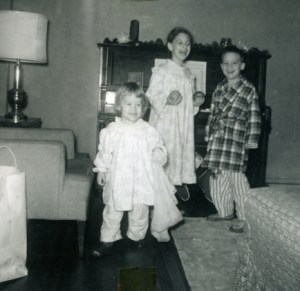 The living room changed looks over the years. Momma would repaint, make new curtains, and send the furniture out to be recovered. For one of these makeovers, Daddy took us to the beach and Momma stayed home and painted the living room. In another makeover, Momma decided we needed a den more than my brother needed a room of his own, so she made bunk beds out of the twin beds in the room I shared with my sister (they were made to be able to do that), and brought my brother’s bed into that room. The living room furniture was out for recovering, and late at night after everyone had gone to bed I realized I had not read my homework assignment. Guilty, I climbed down from the top bunk, got my book, and sat on the floor in the living room to read the assignment. I think crying was involved (it was scary climbing down from that top bunk). When we got home from school the next day, the beds were back like they had been, the den idea gone—Momma didn’t like making up that top bunk, so she put it all back the way it was.